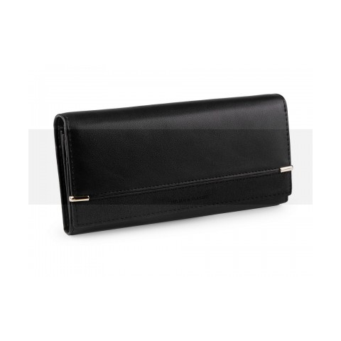 Női pé,nztá,rca ,.Kapocs segí,tsé,gé,vel zá,rható, be. 9 zsebe van kreditká,rtyá,ra, ebből 1 á,tlá,tszó,. A pé,nztá,rca kö,zepé,n 3 zseb talá,lható, papí,rpé,nzre. Bal oldalá,n talá,lható, egy zseb apró,pé,nzre, belsejé,ben 2 ré,szre felosztva. Mé,retek: ,9,5 x 18,5 x 3,5 cmö,sszeté,telpoliuretá,npoli&eacut