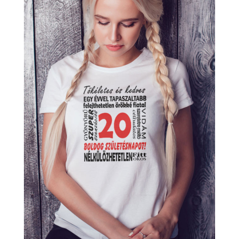 Női póló feliratokkal, boldog születésnapot. Születésnapi meglepetés választható életkorral és kedves szavakkal. Férfiaknak, nőknek egyaránt tökéletes választás születésnapra. Válassz többféle színű és fazonú pólóink közül. A minta tartós, nem kopik le,