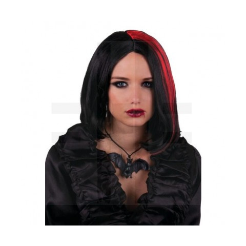 NŐI VÁMPÍR PARÓKA, FEKETE-PIROS paróka 1 kép