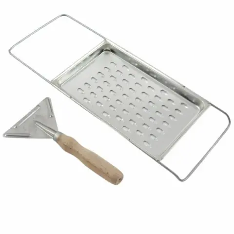 Fém nokedliszaggató lapát mérete: 16.3 cm hosszú, kb. 8.3 cm széles
