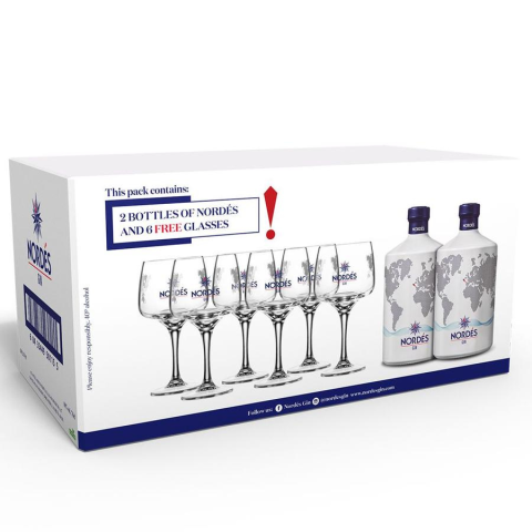 1 kép Nordes gin díszdobozban 6 pohárral DRS (2x0,7L / 40%)