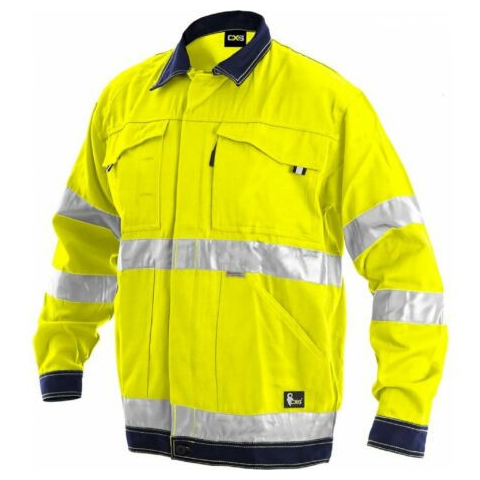 Rejtett cipzáras mellzseb 3M reflexcsíkok (5 cm) Gombos mandzsetta 65% poliészter, 35% pamut 280 g/m2 EN ISO 20471