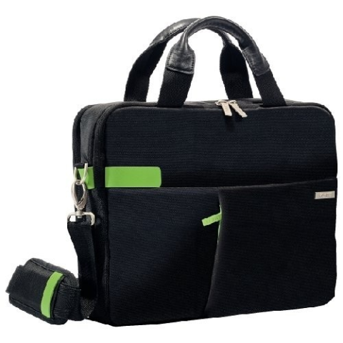 LEITZ Elegáns formatervezésű, strapabíró, poliészter anyagból készült üzleti táska. Hordható vállon a kényelmes - vállrésznél bőrrel párnázott, állítható hosszúságú vállpánttal vagy a gurulós bőröndre rögzítve. 18 zseb, többek között egy mini táblagép