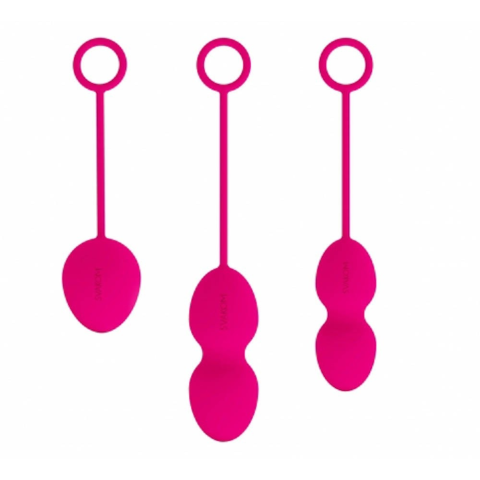 Kiváló minőségű, bőrbarát szilikonból készült, háromrészes szett eltérő méretű és súlyú golyókkal (49 g, 75 g, 95 g), amelyek hüvelybe helyezhetők. A golyók belsejében mozgó ballasztgolyók találhatók, amelyek használat közben