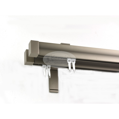 Novum 2 sínes alumínium profilkarnis ALU-SZATÉN színben tartozékokkal együtt A profil két oldala közül bármelyik használható: a hullám formájú és a bordás is. A karnis profil mérete: kb. 35 mm magas, 15 mm széles A tartók hossza: kb. 11 cm. (Ugyanaz a t
