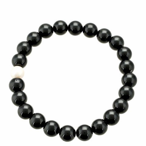 Nugget Karkötő Fekete Turmalinnal és Fehér Édesvízi Kagylógyönggyel, PCY11370 karkötő termékleírás