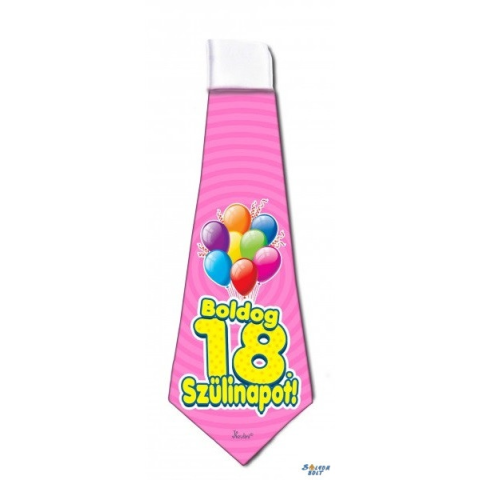 Nyakkendő, Boldog 18. 20. 30. 40. 50. 60. 70. szülinapot Nyomott mintás, gumis, nyakba akasztható. Mérete: 37 cm x 13 cm Anyaga: poliészter Születésnapi ajándék ötlet hölgyeknek