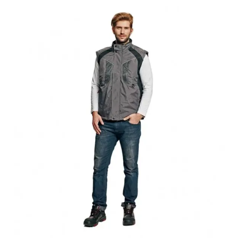 NYALA mellény szürke L • vízálló bélelt mellény állógallérral • húzózsinórral szűkíthető alsó szegély • fényvisszavető részletek • nagyméretű cipzárhúzók • gépi hímzésre alkalmas