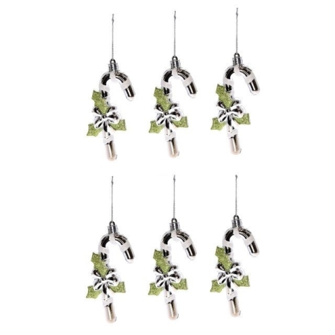 Anyaga: Műanyag Mérete: 11,5x4,5 cm Szín: Ezüst Nyalóka akasztós ezüst 6 db-os Figurás karácsonyfadísz.