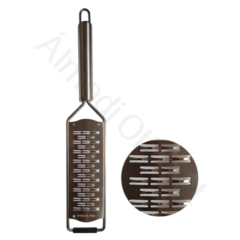 Rozsdamentes acélból készített nyeles kézi reszelő, melyet anyagának és kialakításának köszönhetően igazán praktikus társad lehet a konyhában. Kialakításának köszönhetően használhatod sajtok, gyümölcsök, zöldségek reszeléséhez, de akár csokoládét vagy a