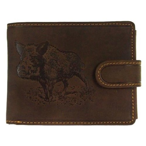 Kívül-belül kapcsos nyers marhabőr pénztárca vaddisznó nyomással