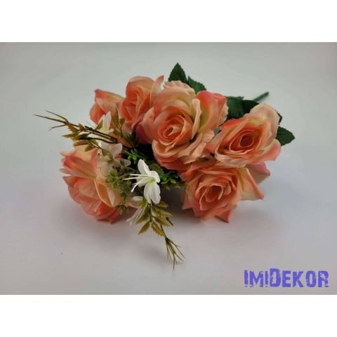 1 kép Nyíló rózsa 9 ágú selyem csokor 42 cm - Barack
