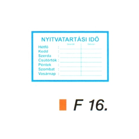 Nyitvatartási idö Cikkszám: F16 Kivitel: Öntapadós Méret: 230x155mm