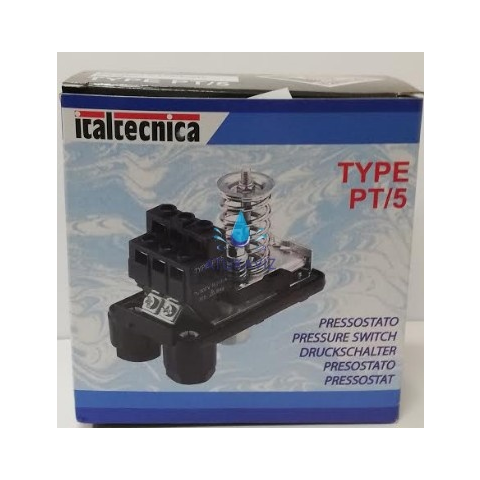PT5 Nyomáskapcsoló Gyári beállítás 1,4 bar-2,8 bar Feszültség 500 V Áramerősség 16 A Csatlakozás :1/4 hollandis Maximum 5 bárig