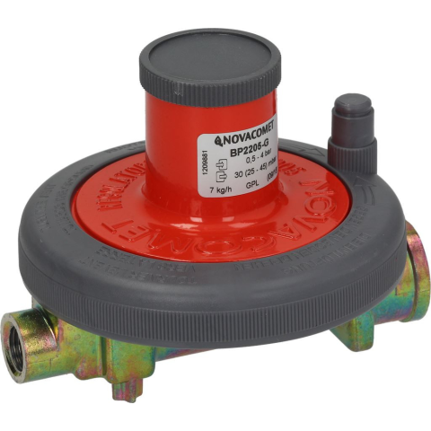 kapacitás 7 kg/h | bemenet ø 1/4'F | kimenet ø 1/2'F | LPG alacsony nyomású szabályzó | kimeneti nyomás 30 mbar (25÷45 mbar)