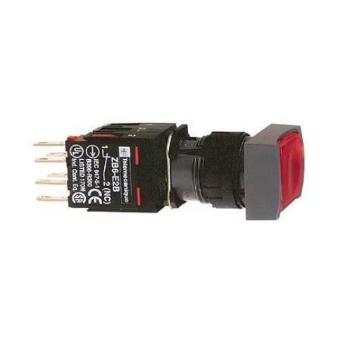 XB6-DF4B5B Világító nyomógomb téglalap, piros NO/NC Schneider \nPiros négyzetes sülly. világító nyomógomb Ø16 reteszelő 1NO+1NC 12...24V. termékcsalád: Harmony XB6 - termék vagy komponens típusa: komplett világító nyomógomb - készülék rövid megnevezése