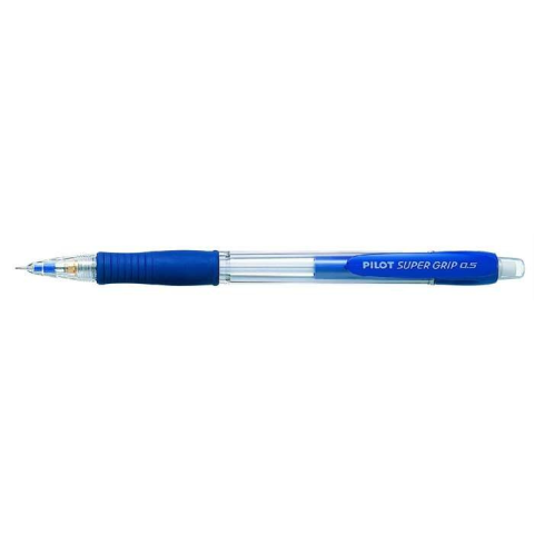 Nyomósirón, 0,5 mm, PILOT SuperGrip, kék - átlátszó, műanyag test - gumírozott markolat - 0,5 mm-es hegy - beépített radír - teljesen visszahúzható hegy
