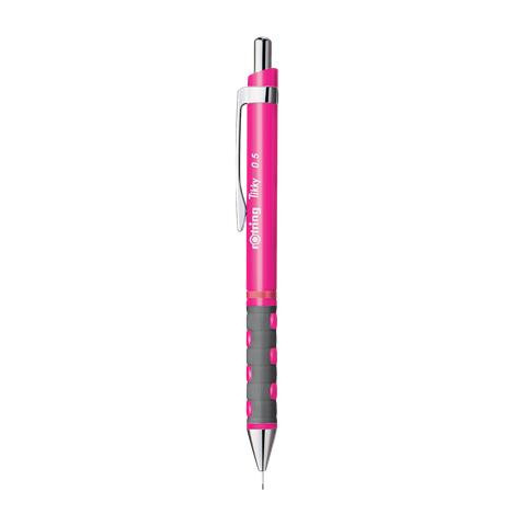 Nyomósirón, 0,5 mm, ROTRING Tikky, neonpink Enyhén hullámos ergonómiailag tervezett fogórésze biztos tartást ad használójának, akár preciziós tevezéshez illetve vázlatrajzoláshoz is alkalmas. -gumirozott fogórész -írásvastagság: 0,5 mm -ISO 3098 szín