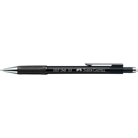 Nyomósirón FABER-CASTELL Tk-Fine Grip 1345 0,5 mm fekete Kiváló minőségű mechanikus ceruza. 0,5mm vonalvastagság. Extra hosszú radír. A végén ergonomikus gumi a könnyebb fogásért. Több színben.