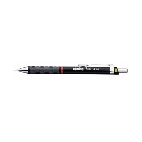 Nyomósirón ROTRING TIKKY III 0,35mm fekete Ergonómiailag tervezett, szürke színű gumifogós markolata biztos tartást tesz lehetővé. A nyomógomb, a klipsz és a preciziós csőcsúcs együttesen garantálják a biztonságos munkavégzést. A nyomósiron kítűnő eszk