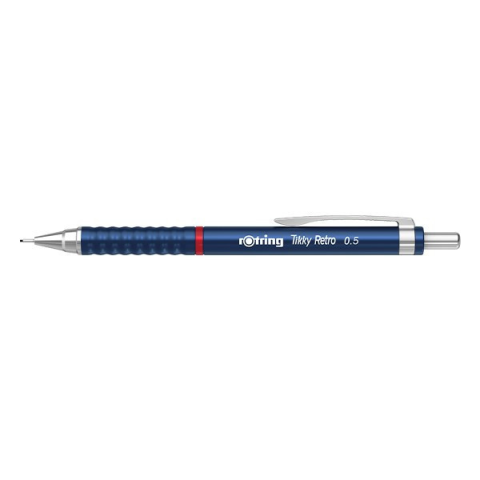 Nyomósirón ROTRING TIKKY Retro 0,5 mm kék Vonalvastagság: 0,5mm; tolltest anyaga műanyag; fogórész nem gumírozott. A Rotring Retro mechanikus ceruza könnyű, műanyagból készült, ideális a mindennapi használatra. Tökéletes választás rajzoláshoz, tervezés