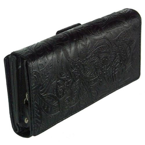 Cipzáros aprótartós dombornyomású fekete női bőr pénztárca