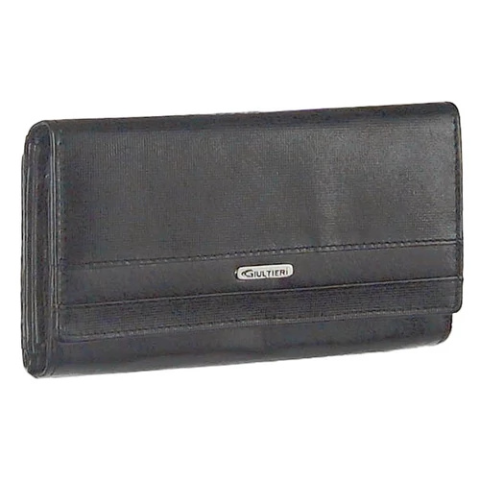 1 kép Nyomott mintás fedeles, cipzáros aprós + kártyatartós fekete bőr pénztárca Giuiltieri
