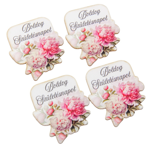 Nyomtatott dekorkarton Boldog születésnapot virágos tábla 6cm 4db-os