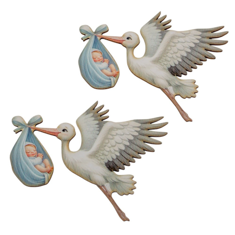1 kép Nyomtatott dekorkarton gólya babával kék 10cm 2db-os