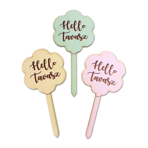 Nyomtatott dekorkarton Hello tavasz beszúrós táblák mix 10cm 6db-os