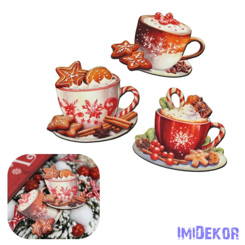 1 kép Nyomtatott dekorkarton - Karácsonyi forrócsoki szett 5cm 3db/csomag