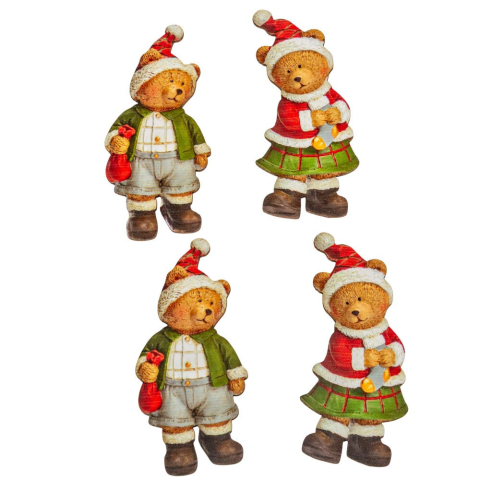 Nyomtatott dekorkarton Karácsonyi piros maci 8cm 4db-os