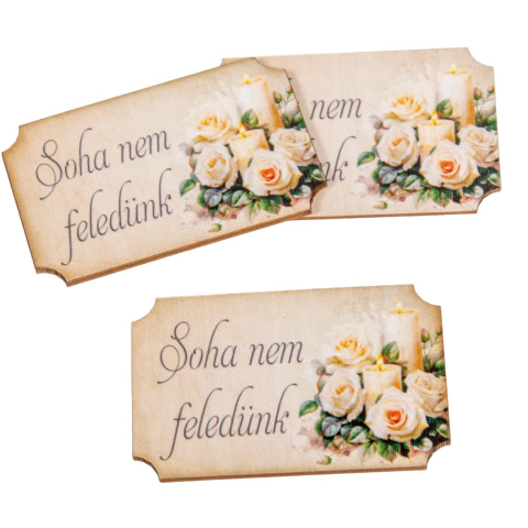 1 kép Nyomtatott dekorkarton Soha nem feledünk felirattal 6,5cm 3db-os