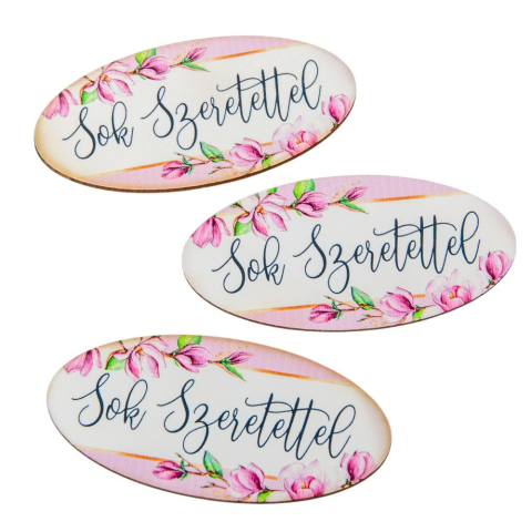 1 kép Nyomtatott dekorkarton Sok szeretettel ovál tábla 8cm 3db-os