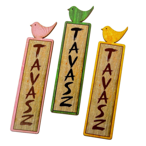 1 kép Nyomtatott dekorkarton Tavasz tábla madárkával 12cm 3db-os
