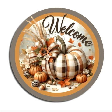 1 kép Nyomtatott dekortábla, koszorúközép - Welcome felirat tökkel. Mérete: 11,8 cm