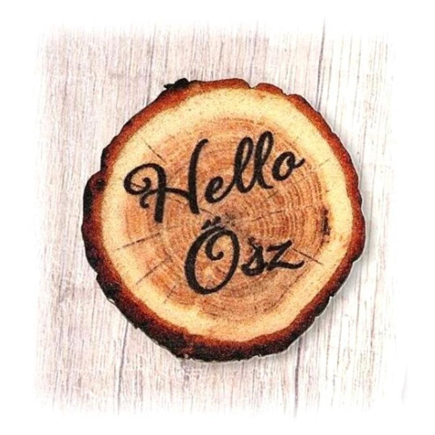 1 kép    Nyomtatott fa korong 'Helló Ősz' felirattal. Átmérője: 5 cm