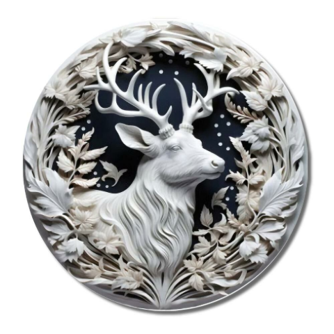 1 kép Nyomtatott fa tábla koszorú közép - Fehér szarvas 11,8cm