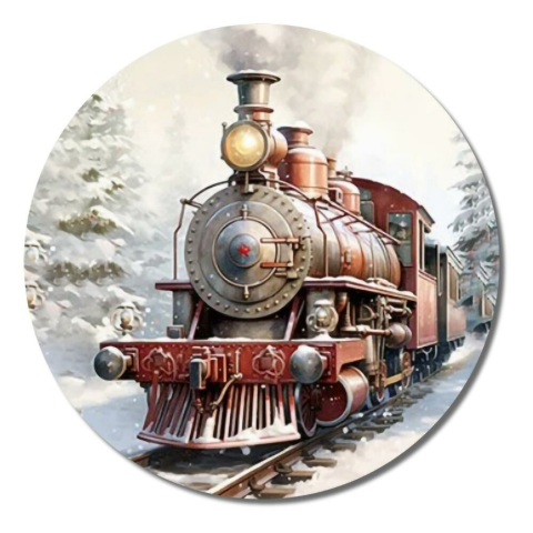 1 kép Nyomtatott fa tábla koszorú közép - Karácsonyi vonat 14,8cm