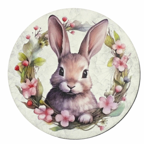 1 kép Nyomtatott fa tábla koszorú közép - nyuszifejes koszorú 14,8