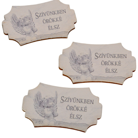 Nyomtatott fa tábla - Szívünkben örökké élsz 6,5cm 3db-os