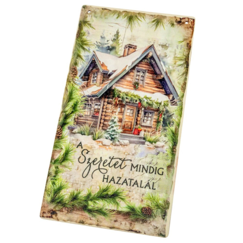 1 kép Nyomtatott fa tábla Zöld karácsonyi téma Szeretet 13x24,3cm