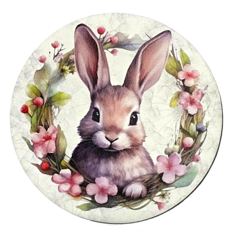 1 kép Nyomtatott kerek dekortábla, nyuszifejes koszorú. Mérete: 11,8 cm