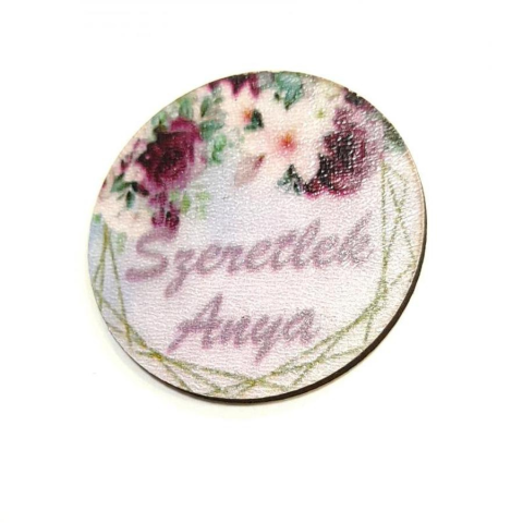 1 kép Nyomtatott kerek tábla 'Szeretlek Anya' felirattal. Átmérője: 5 cm