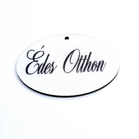 1 kép    Nyomtatott ovális tábla 'Édes Otthon' felirattal. Mérete: 7,5x5 cm