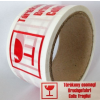 Fehér alapon piros színnel nyomva, “Törékeny” felirat + piktogram