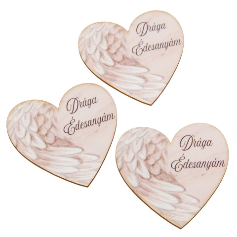 1 kép Nyomtatott szív dekorkarton - Drága Édesanyám felirattal 7cm 3db-os