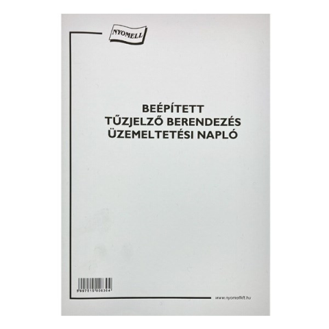 Nyomtatvány beépített tűzjelző berend. üzemelt. napló Beépített tűzjelző berendezés üzemeltetési napló. A/4 méretű, álló. Minőségi belív, karton fedlap.