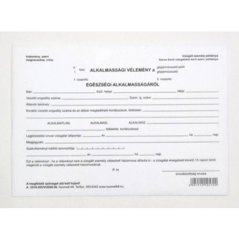 2 kép - Nyomtatvány egészségi alkalmassági vélemény