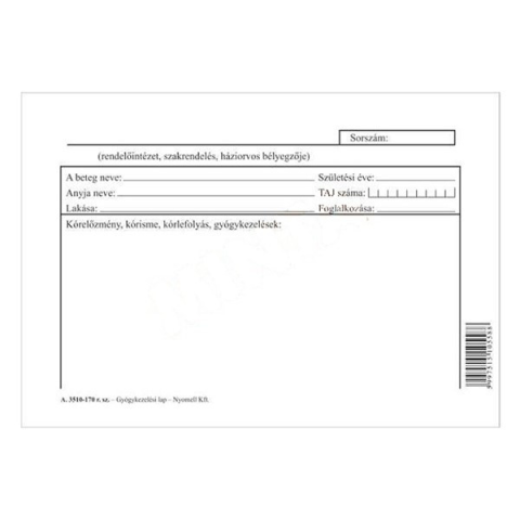 1 kép Nyomtatvány gyógyászati lap A/5 1 lapos